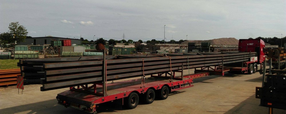 Hiervoor maken we gebruik van een 3-assige semi, dubbeluitschuiver, 3 assen hydraulisch gestuurd. Verder hebben we hiervoor een vlakke open wagen.